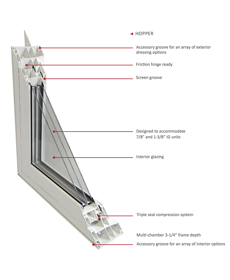 - Hinged at top or bottom with traditional hopper hinges, or more opening options using friction hinges.