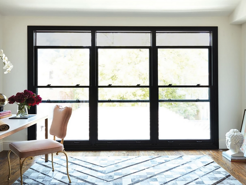 A double-hung window can be raised from the bottom or lowered from the top with two sashes that move independently. The two sashes are stacked and meet in the middle with a latch that locks the window shut. Double-hung windows are simple to clean as both sashes tilt inward for easy access to the interior and exterior glass surfaces. Because double-hung windows ventilate without protruding inwards or outwards, they maximize both interior and exterior space, making them popular choices in entertainment spaces like patios and porches.